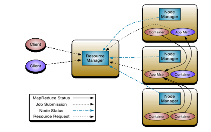 따라서, 한정된 자원에서 요구사항을 충족시키려면 가용 연산 자원의 용량과 필요한 워크로드를 모두 알고 있는 중앙의 클러스터 매니저가 필요한데 이를 Yarn이 담당합니다.