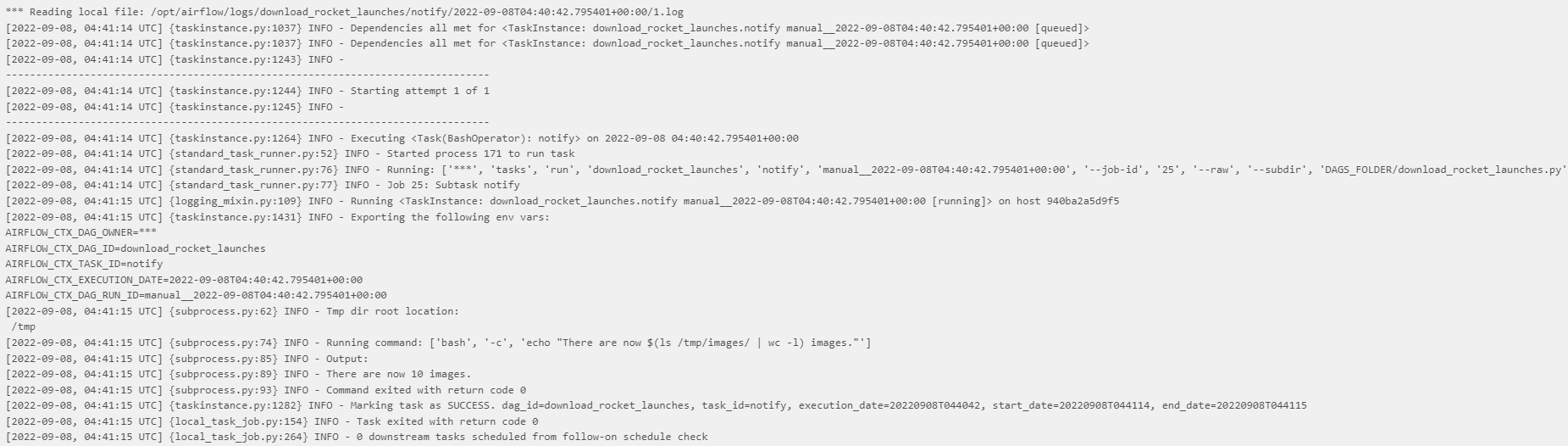 Task를 클릭하여 'Log'를 클릭하면 해당 Task의 Log를 확인할 수 있습니다. 위 부분은 'notify' Task의 Log 입니다.