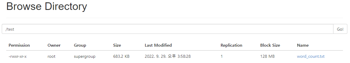 /test 하위 디렉토리에 Data가 Load 된 것을 확인할 수 있습니다.