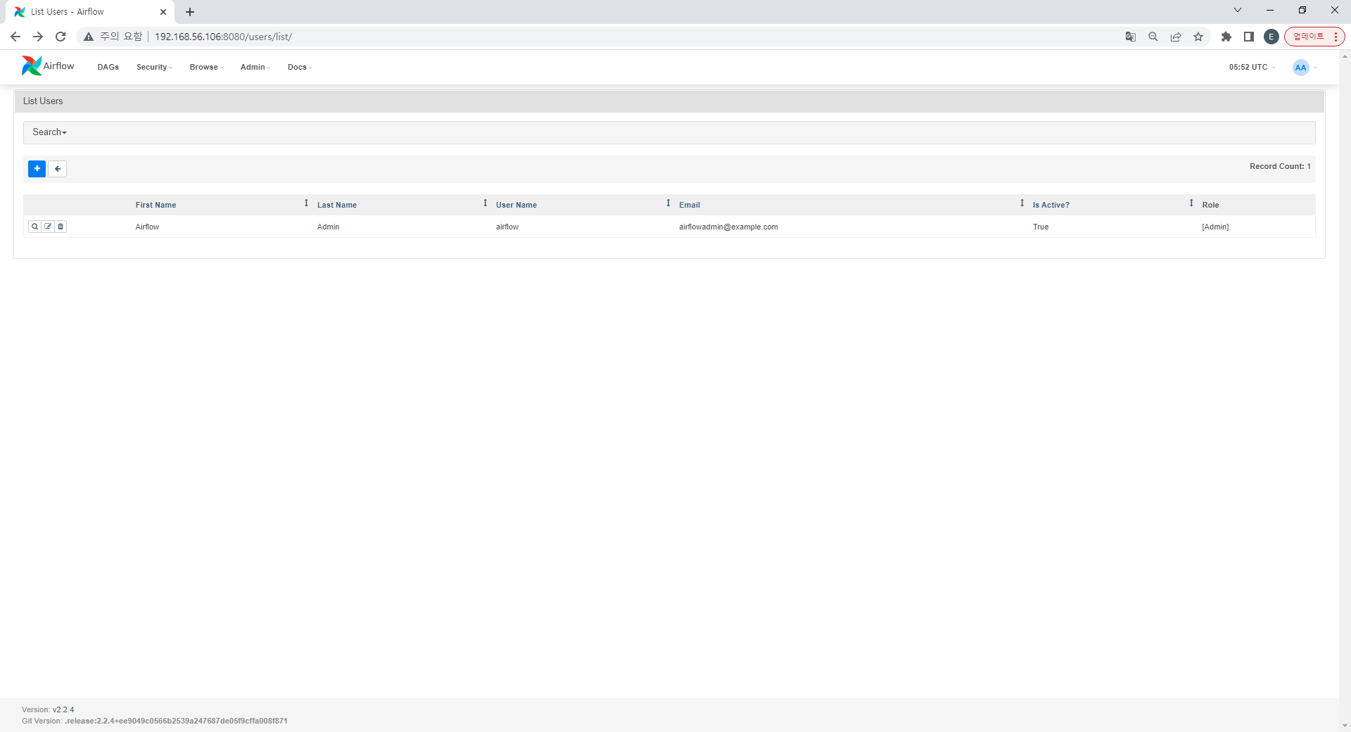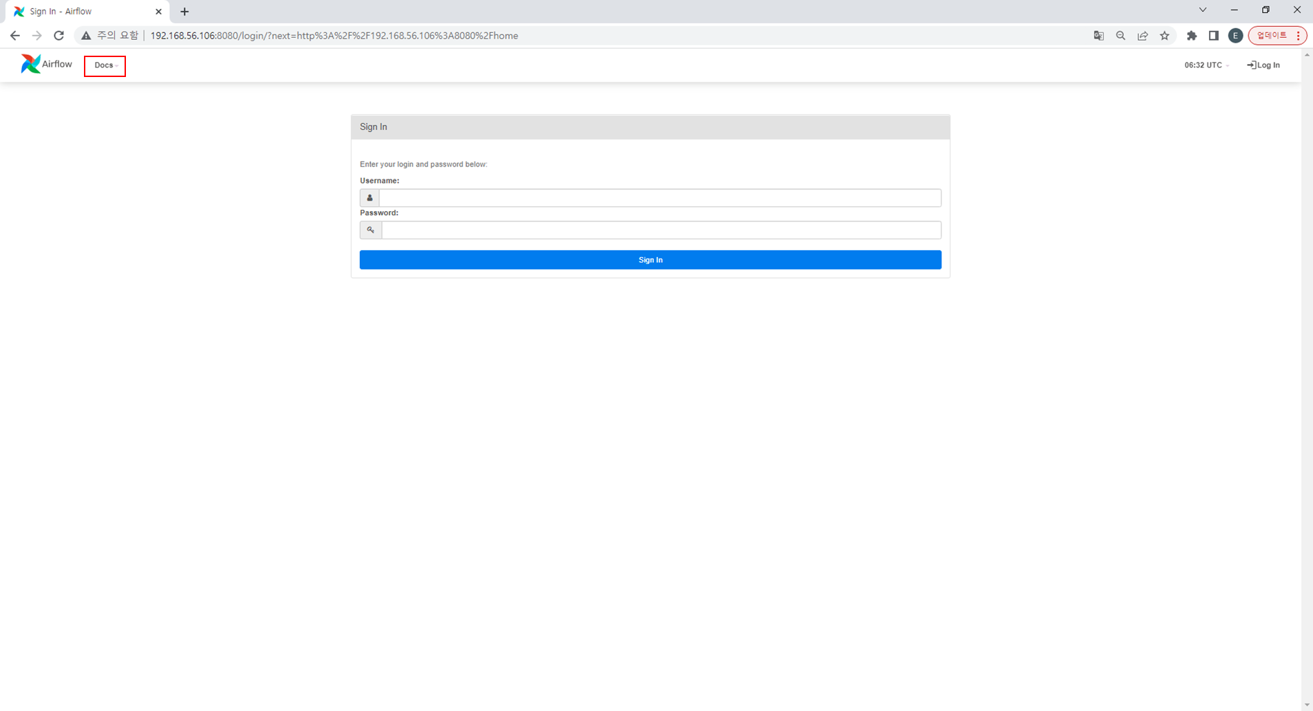 - Apache의 Docker Image가 기본적으로 ID : airflow / PW : airflow 로 설정되어 있음