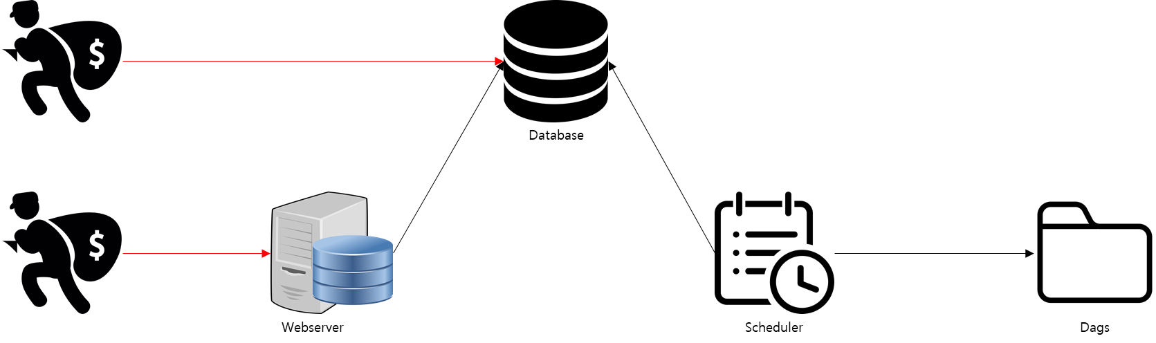 - Airflow 여러 구성 요소는 모든 SW는 접근 권한이 없는 게스트가 시스템에 액세스할 수 있는 경로 역할을 하므로 잠재적인 위협이 됨