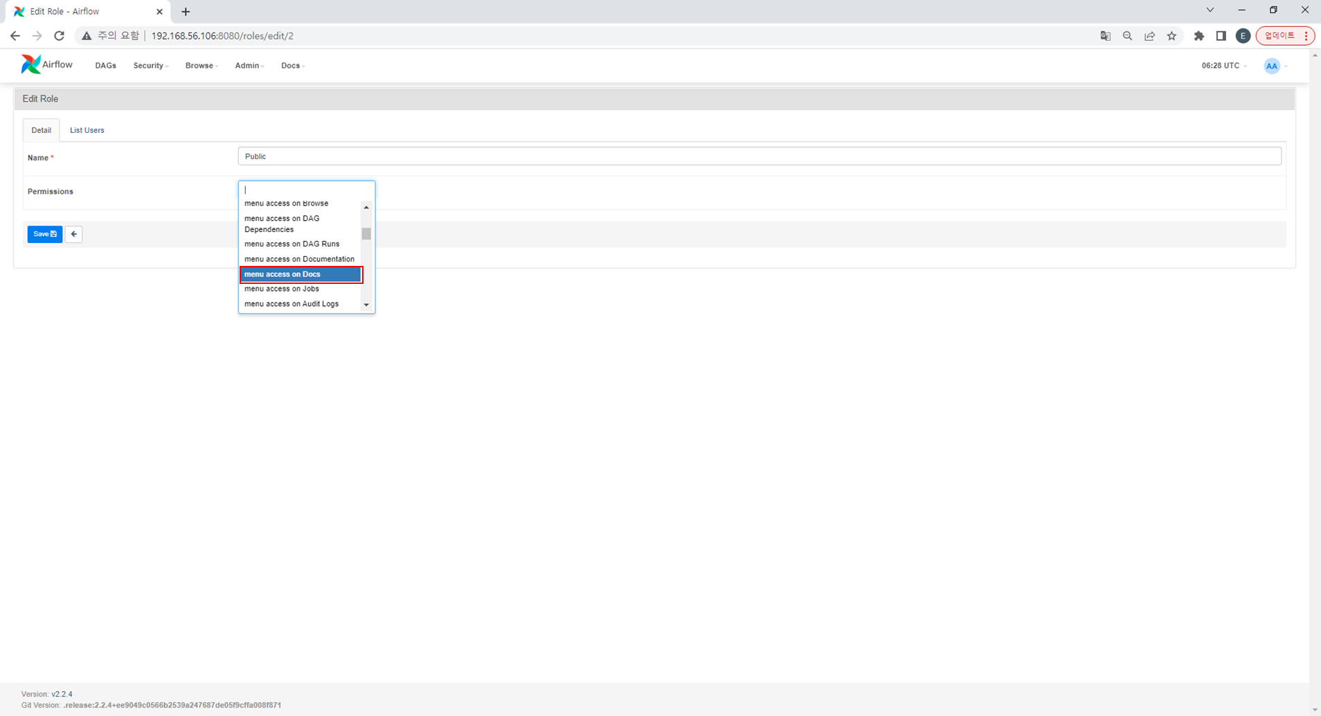 ex) Public 역할에 'menu access on Docs' 권한을 추가