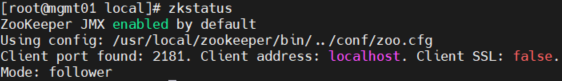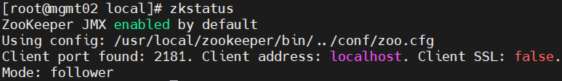 alias zkstatus="/usr/local/zookeeper/bin/zkServer.sh status"