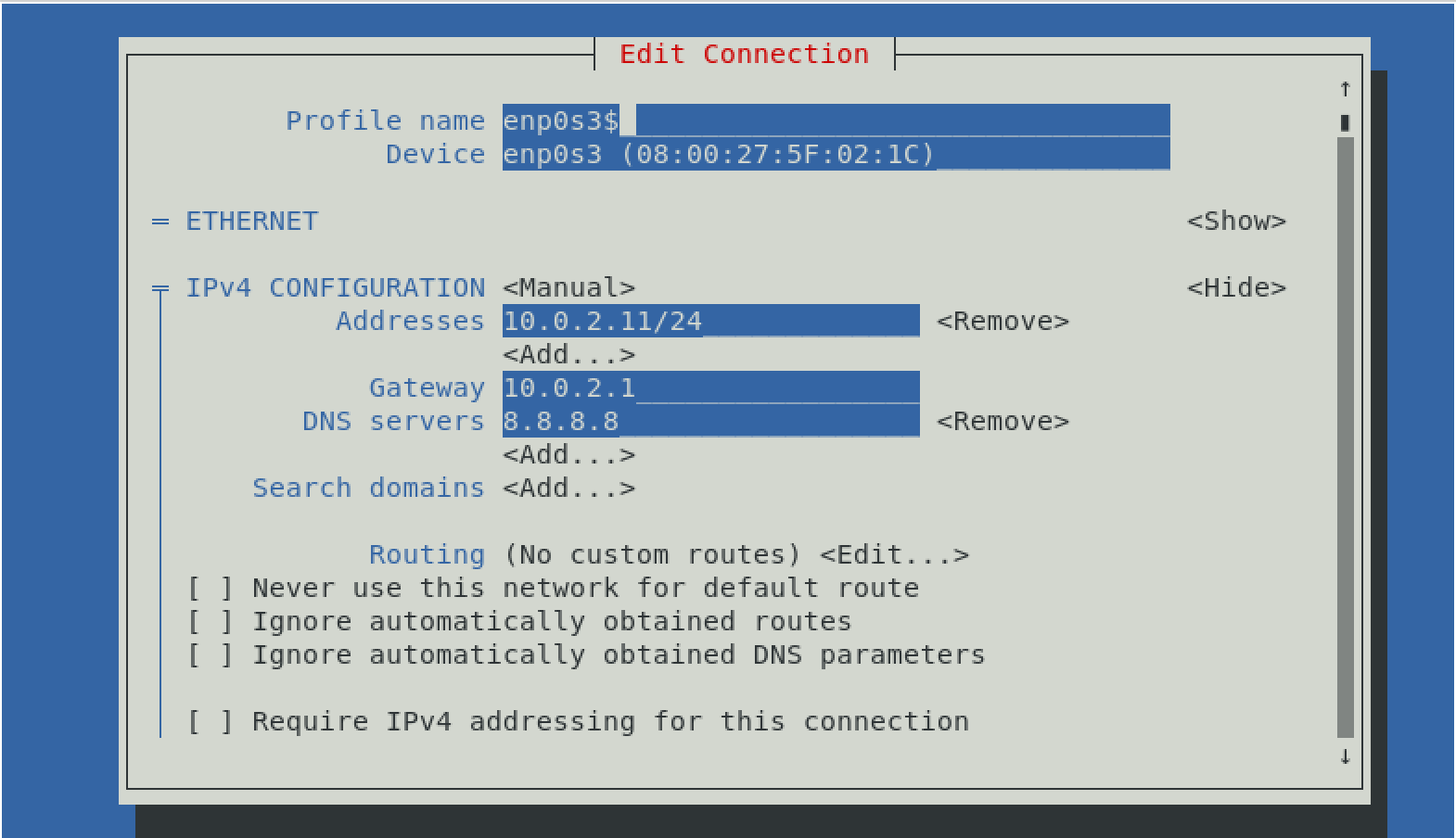 · 기본적으로 제공 단, 설치가 되어 있지 않는 경우 NetworkManger-tui 패키지 설치