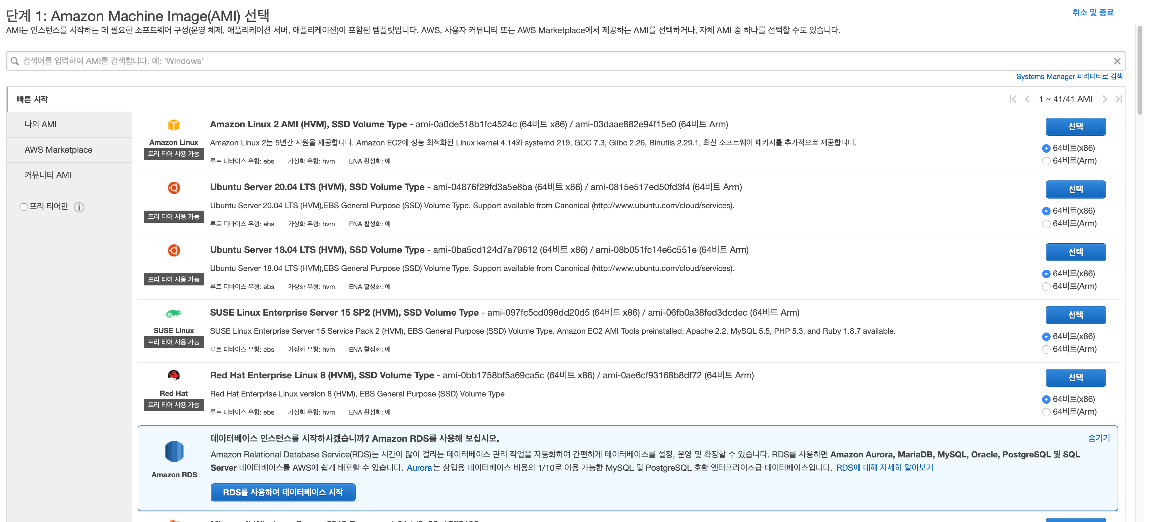 5) 'Amazon Linux 2 AMI (HVM), SSD Volume Type' 선택