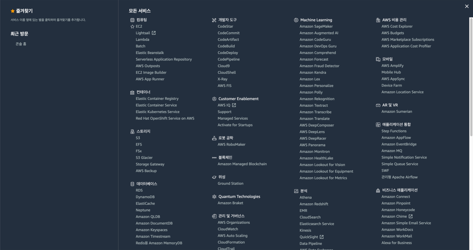 3) '서비스' 클릭 후 컴퓨팅에서 EC2 클릭