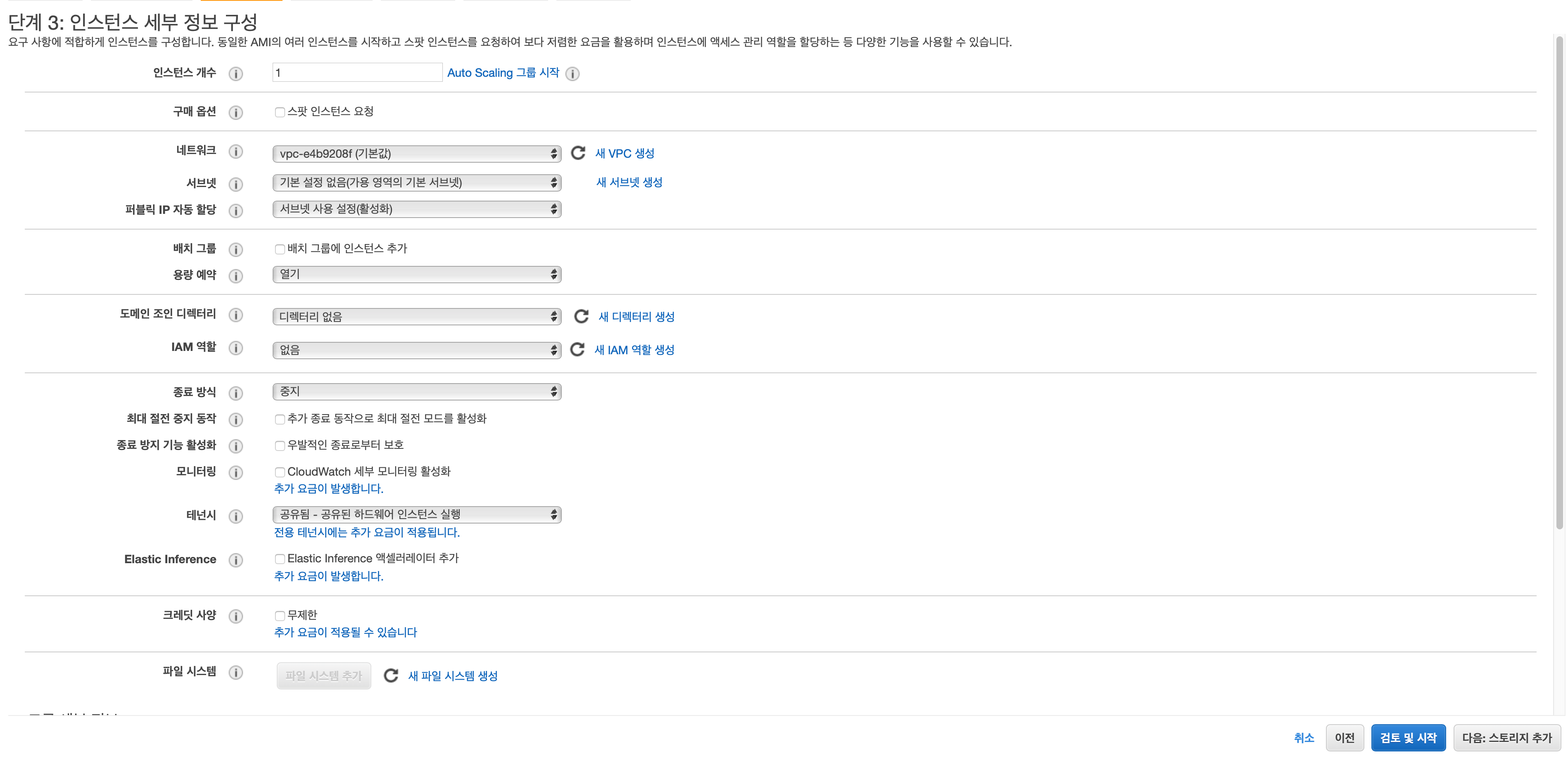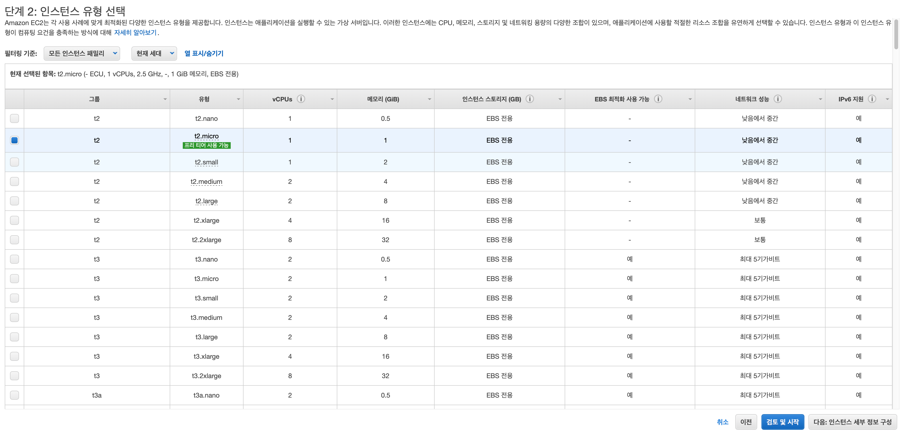 6) t2.micro 선택 후 오른쪽 하단에 '다음:인스턴스 세부 정보 구성' 클릭