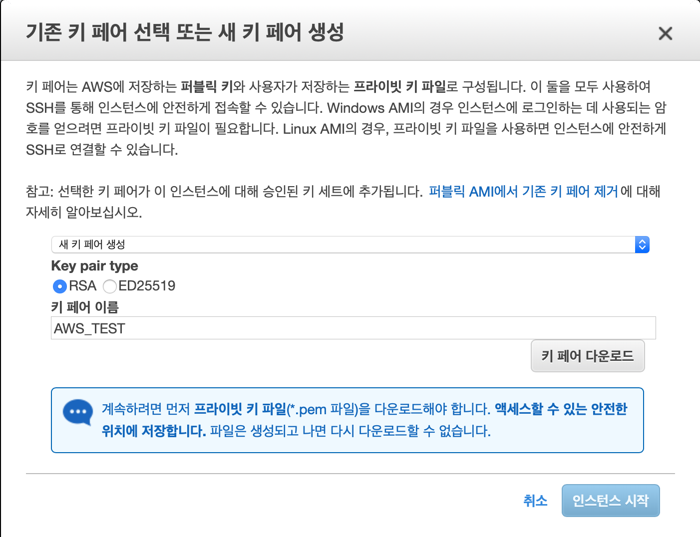 ※ 키 페어는 매우 중요함으로 절대 잊어버거나 노출 금지!
