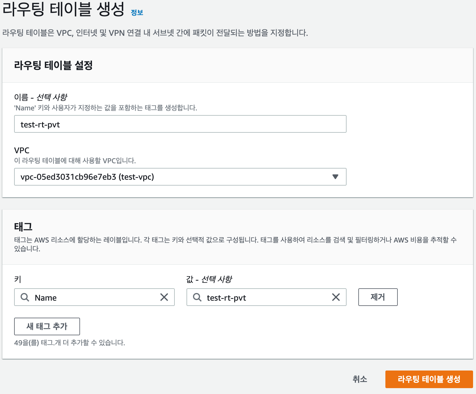 - 기존 생성한 Private Subnet (test-sub-pvt) 선택