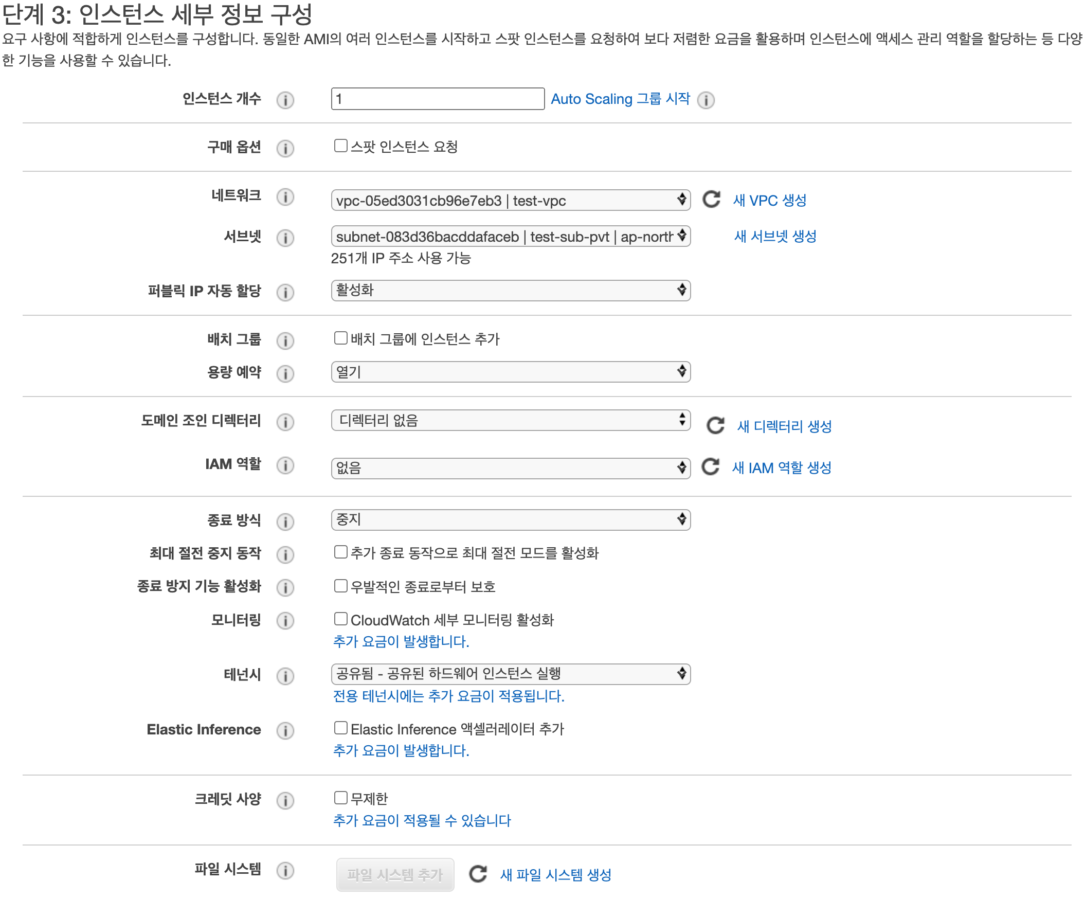 - VPC ID : 기존 생성된 VPC (test-vpc) 선택