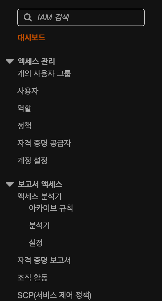 ☞ 위 링크에서 'IAM 콘솔'을 연다.