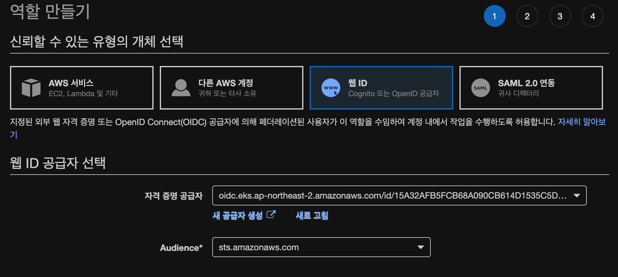 * 자격 증명 공급자 : 기존 생성한 'EKS URI'