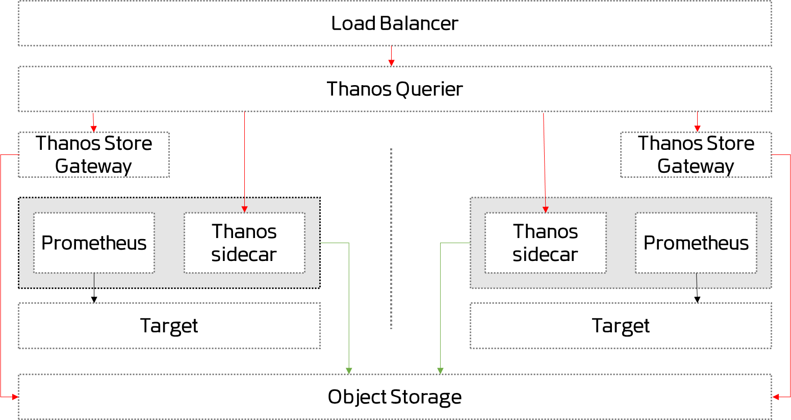 · 최근의 값들을 조회할 경우 Thanos Sidecar를 이용하여 Thanos Querier에서 조회 가능