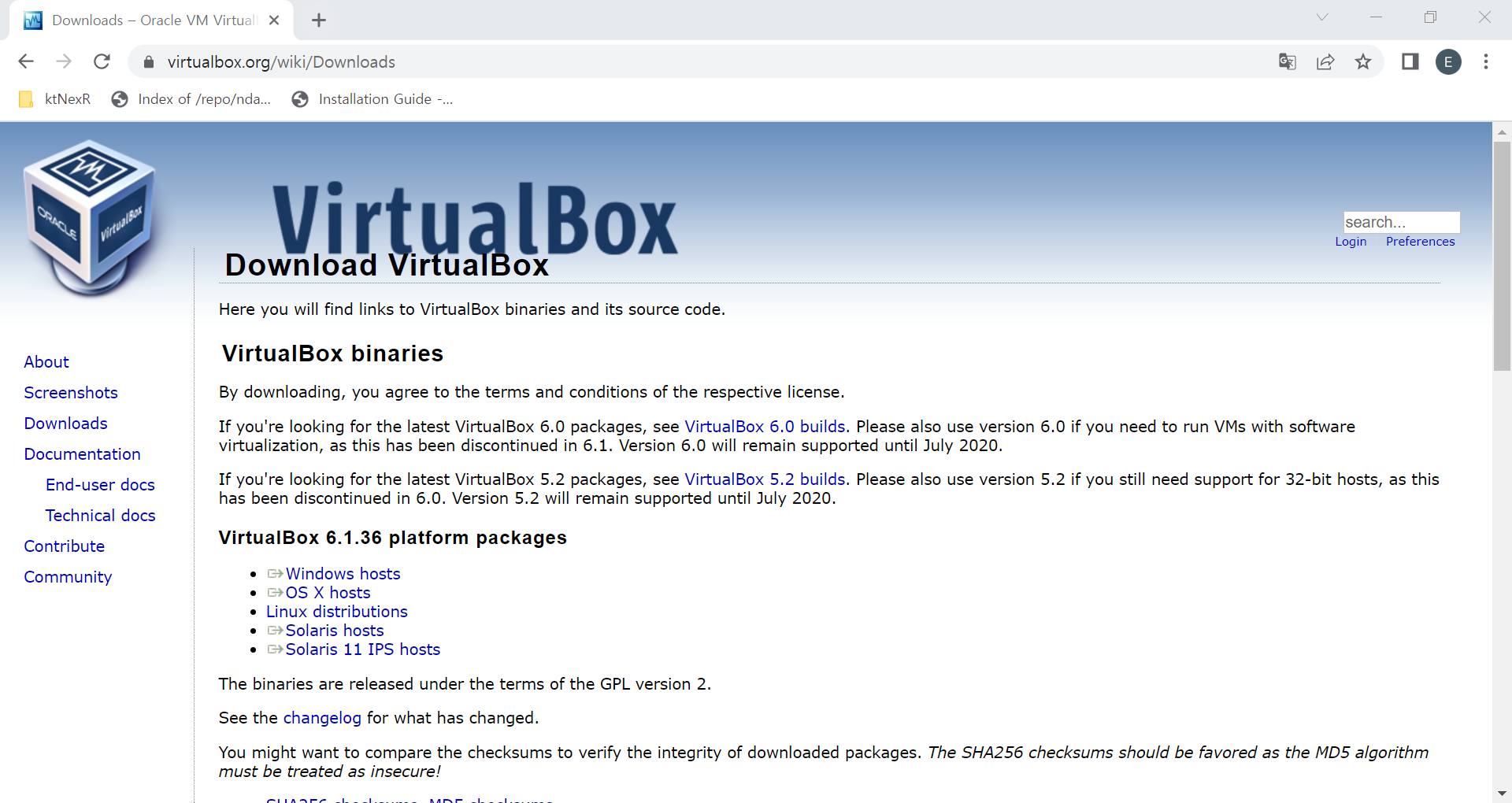 먼저 VirtualBox 파일을 다운로드 받습니다.